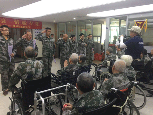 為紀(jì)念中國人民解放軍成立90周年,朗高養(yǎng)老在“八一”建軍節(jié)前夕聯(lián)合各公益團(tuán)隊(duì)開展“軍歌嘹亮 情暖夕陽”主題慰問活動(dòng)。