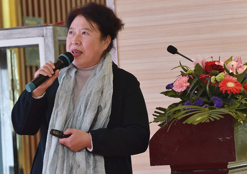 ![]() ▲浙江朗高醫(yī)療股份有限公司副總經理、臺州黃巖朗高護理院、臺州黃巖朗高養(yǎng)老院院長王淑云同志作工作報告。