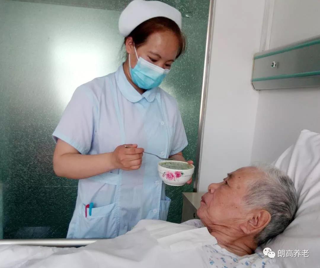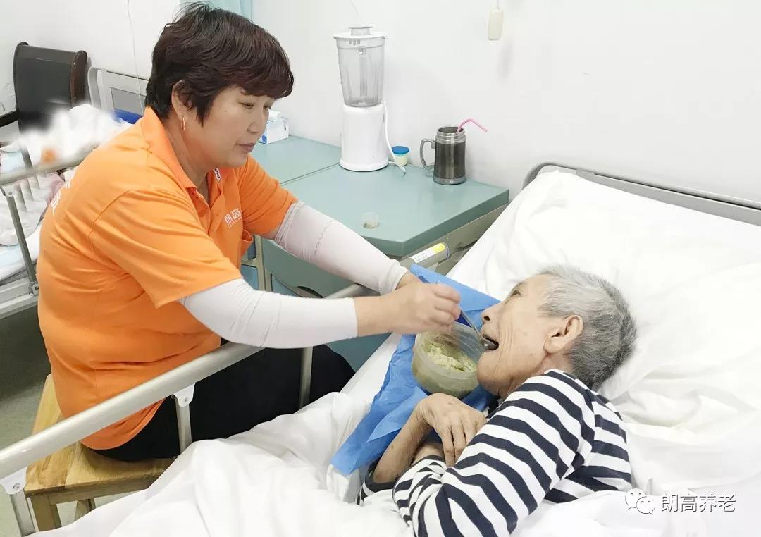 臥床老人:常年臥床老人的飲食一半要硬的,一半要軟的。對于臥床的老人,吃飯一般都是在床上進行的,所以朗高護理人員為老人喂飯是每天必備的工作。