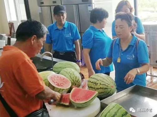 開原寺義工到達(dá)護(hù)理院后,先給老人們送去了香甜的西瓜。隨后,志愿者們來到食堂包起了餛飩。