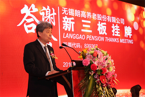 ![]() 掛牌儀式后答謝會(huì)在北京金融街威斯汀大酒店隆重舉行,曹錫榮副主任出席答謝會(huì)并講話。熱烈祝賀朗高養(yǎng)老成功掛牌上市,充分肯定了朗高養(yǎng)老近幾年在養(yǎng)老事業(yè)上的工作,并對(duì)朗高養(yǎng)老事業(yè)未來(lái)的發(fā)展寄予厚望。