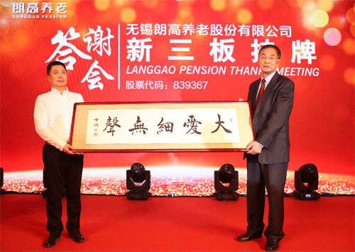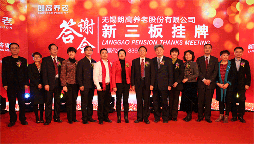掛牌儀式上,劉霞副市長(zhǎng)致辭祝賀:無(wú)錫朗高養(yǎng)老股份有限公司是無(wú)錫市優(yōu)秀企業(yè)的代表,已發(fā)展成為全國(guó)養(yǎng)老行業(yè)的優(yōu)秀企業(yè)和無(wú)錫養(yǎng)老產(chǎn)業(yè)的龍頭企業(yè)。今后無(wú)錫市委、市政府將不斷支持無(wú)錫養(yǎng)老產(chǎn)業(yè)事業(yè)的發(fā)展,為無(wú)錫養(yǎng)老產(chǎn)業(yè)打造更好的明天。