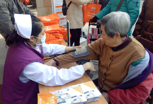 ![]() 居民們排隊(duì)量血壓,及時(shí)關(guān)注自己的身體狀況